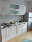 с мебелью. есть холодильник, микроволновка, эл.плита.