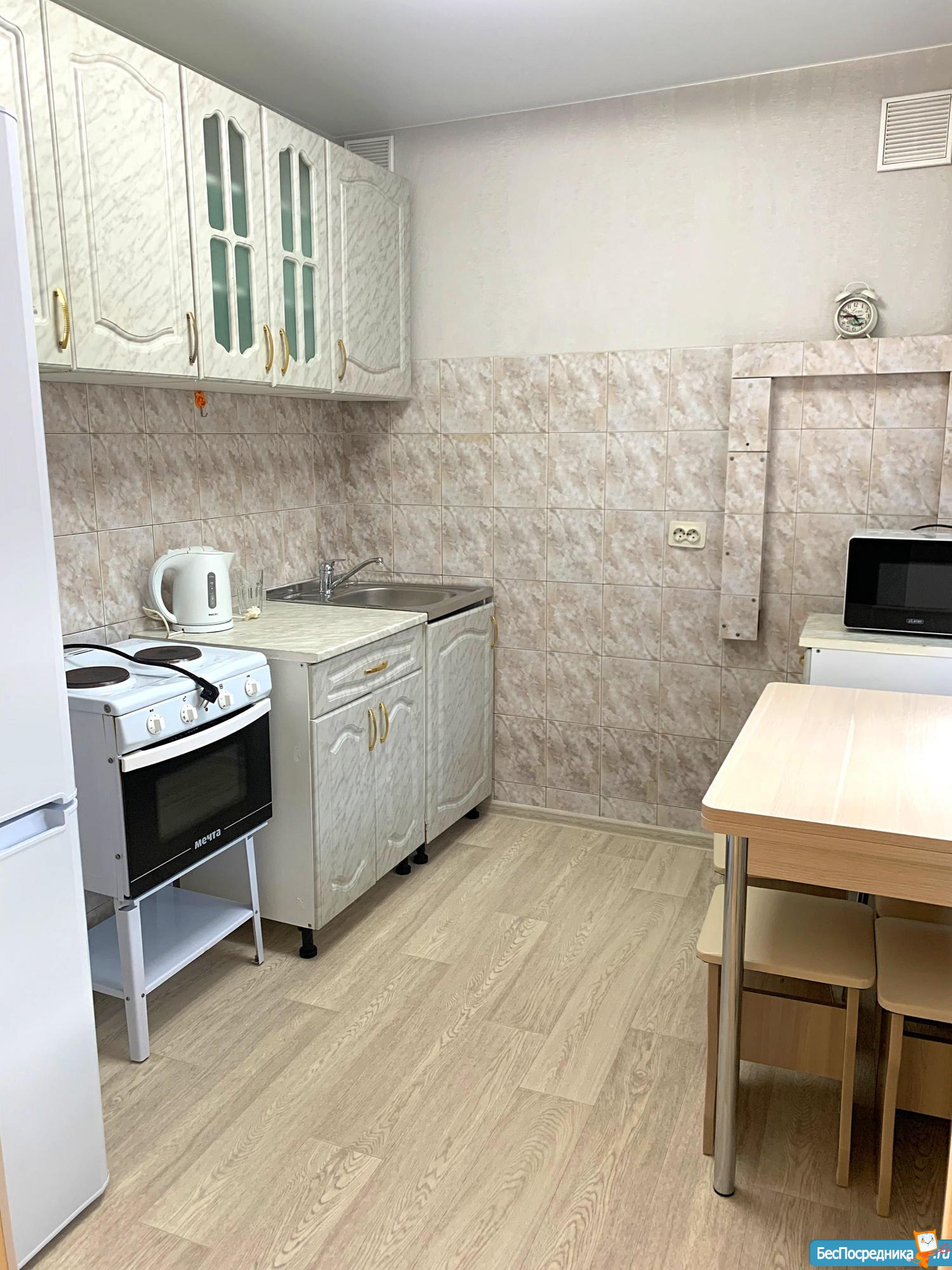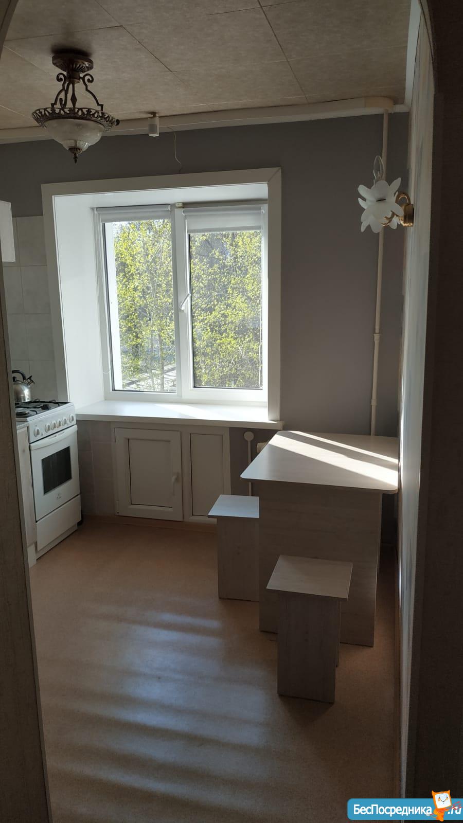 Квартира чистая, теплая, мебель есть, транспортная развязка удобная, остановка транспорта под окном. Оплата коммунальных отдельно, залог 10 000