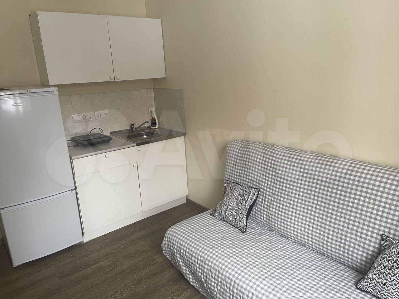 Уютная мини студия общей площадью в 9 кв м ждёт своего нового хозяина. Минимальный срок проживания - 6 месяцев. В студии есть спальное место (кровать), шторы, подушки, шкаф для хранения вещей, кухонный гарнитур, холодильник, плитка для приготовления пищи, чайник, собственный совмещенный санузел со стиральной машиной и душевой. Залог в размере 10000 рублей (возвращается при выезде).
