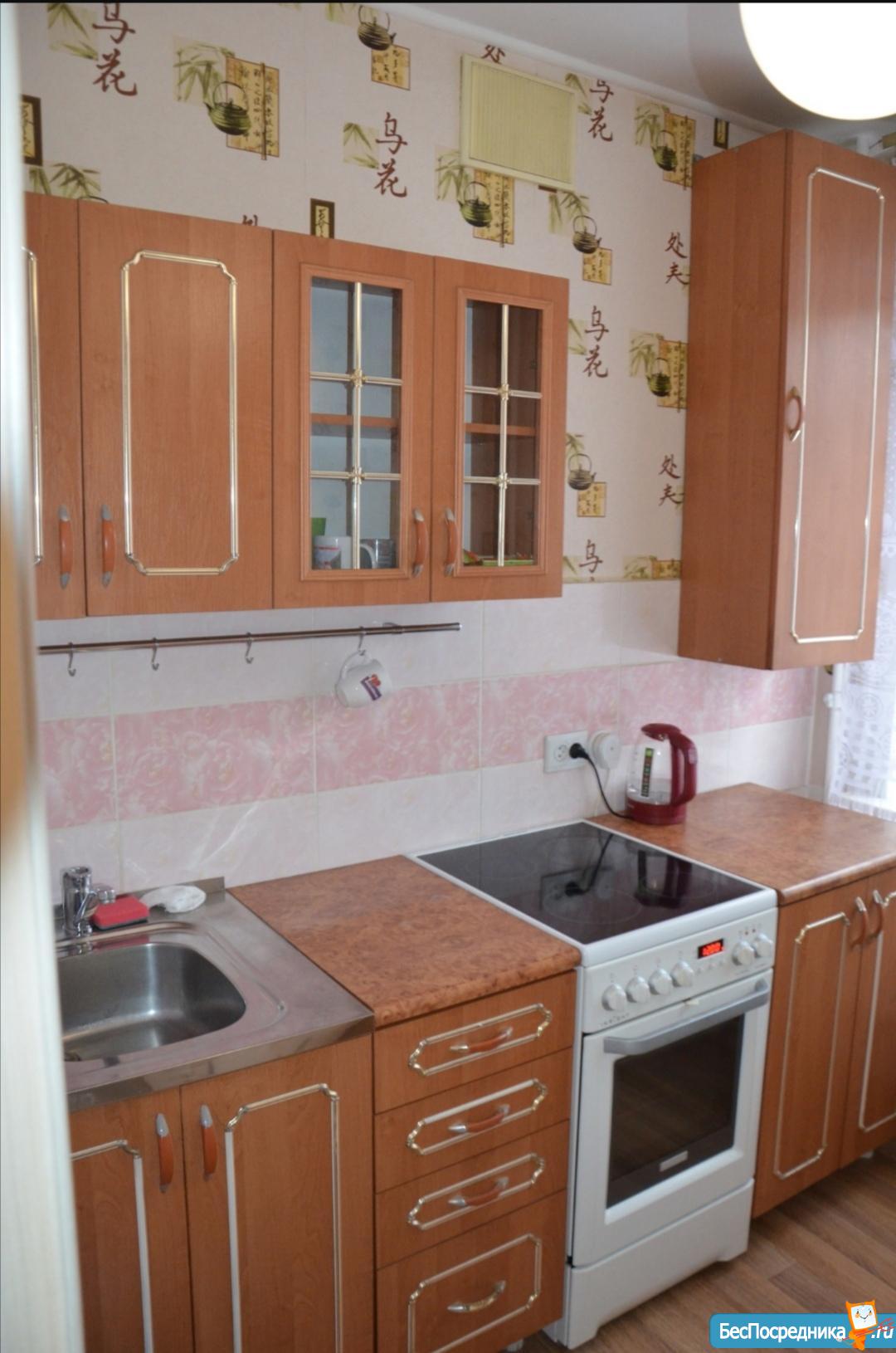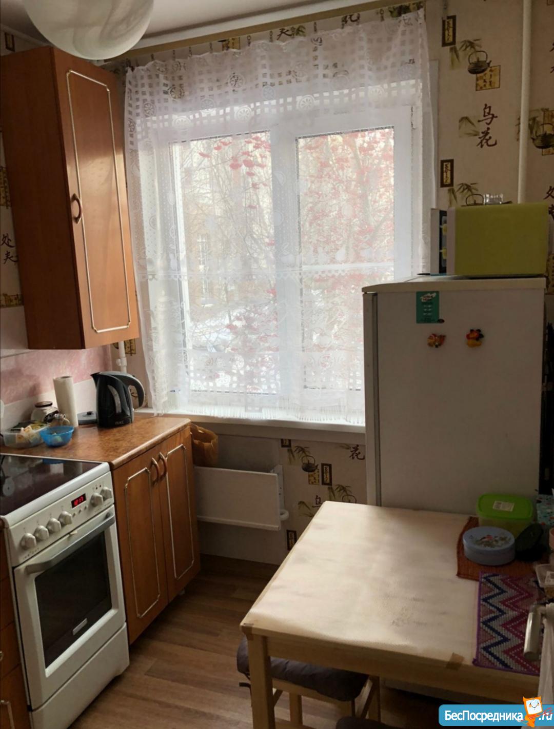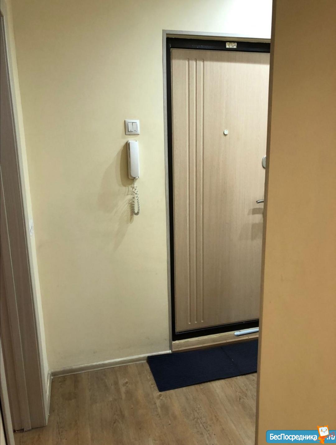 В квартире есть диван, кресло, современная электропечь, кухонный гарнитур, холодильник, стиральная машина автомат, проведён интернет и домофон. Кровати нет.