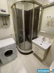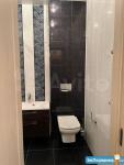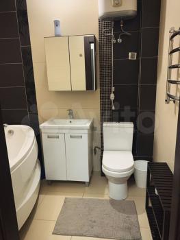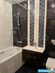 Санузел отделан кафельной плиткой, имеется система теплый пол, душевая кабина, стиральная машинка-автомат, водонагреватель.