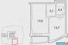 Застекленная лоджия 4,6м2, с которой отрывается прекрасный панорамный вид с 20 этажа на Новосибирск, также лоджия не входит в общую площадь квартиры, т.е. квартира 42,9 + 4,6 = 47,5 м2.