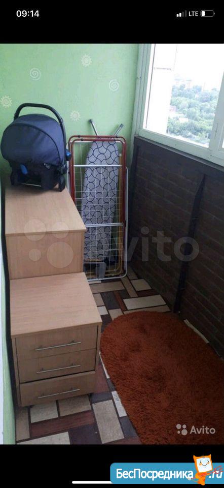 В квартире все необходимое для проживания: диван, гардеробная, кухонный гарнитур, обеденный стол. Сделан качественный ремонт, на полу ламинат + плитка.