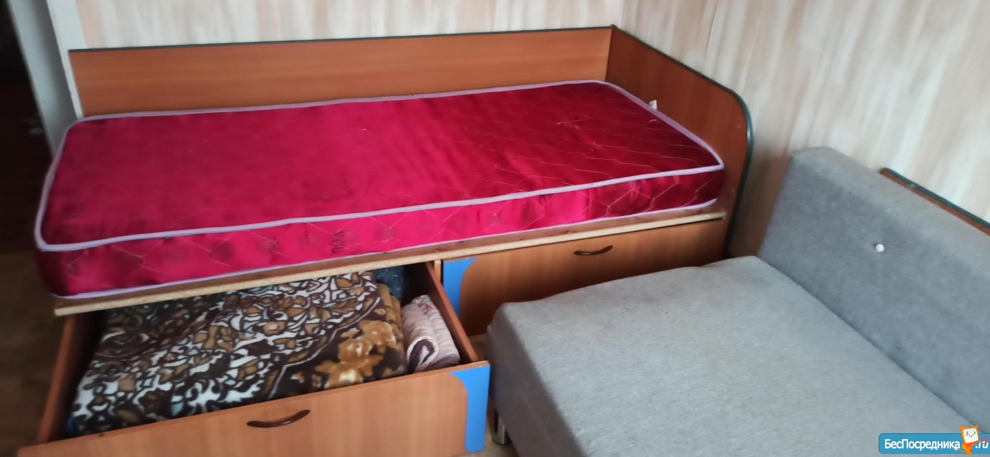 В квартире есть все необходимое для проживания: мебель, большой тв с приставкой, кондиционер в комнате, стиральная машина, плита, чайник, кофеварка и прочая кухонная техника, посуда, застекленный балкон в комнате. В 5 минутах ходьбы автобусная остановка, школа, детский сад, супермаркеты и аптеки.