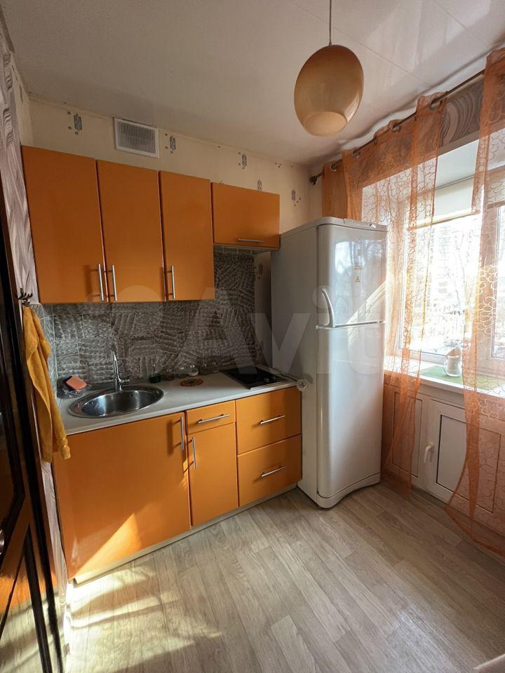 В квартире имеется диван, платяной шкаф, полка для обуви, большая ниша для вещей, стол, стулья, кухонный гарнитур с варочный поверхностью, холодильник. Также есть остекленный балкон.