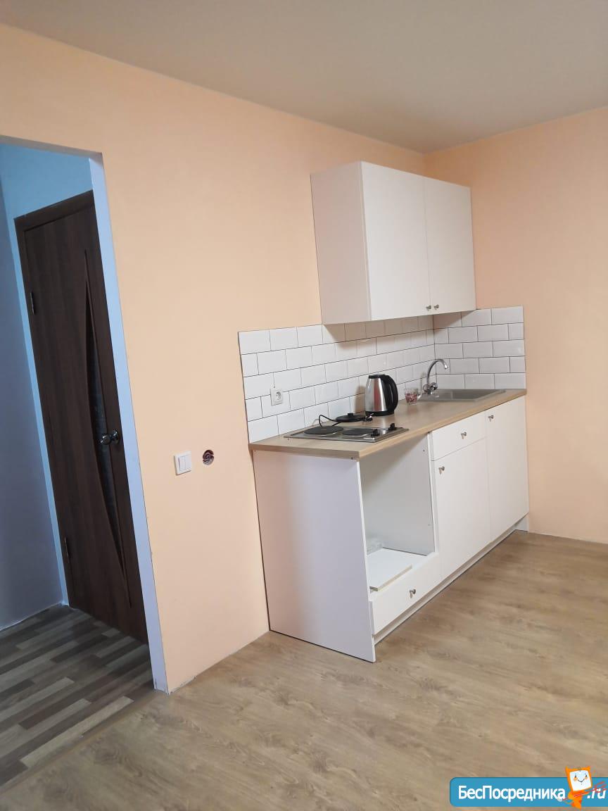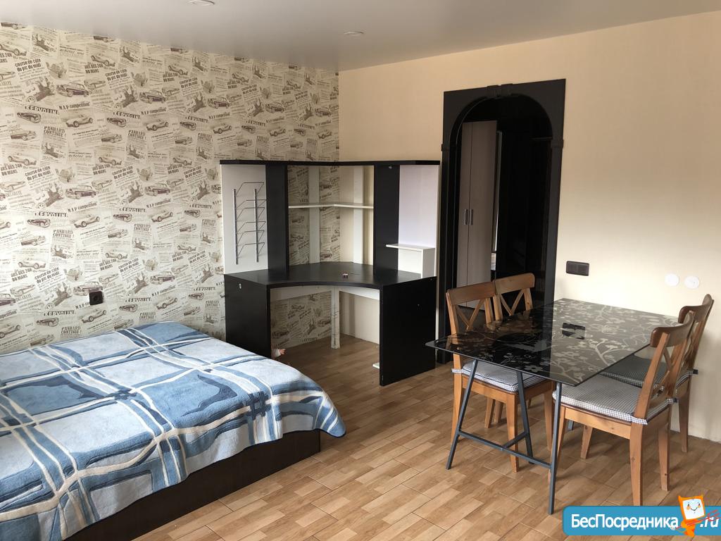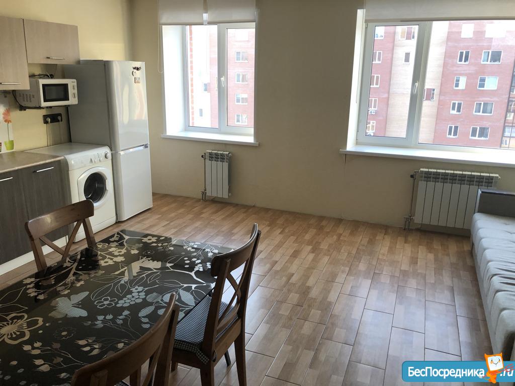 Сдам в аренду просторную,светлую,квартиру студию S=20м2 в новом доме,с новым ремонтом,мебелированную (кух,блок,диван,стол, холодильник,стиралка,шкаф),застекленная лоджия. шикарное,спокойное место, для отдыха после тяжелого рабочего дня.Охраняемая территория, парковка, до площади калинина 20мин на автобусе! Дом находится рядом с остановкой,транспорт ходит часто,вся инфраструктура в шаговой доступности. Ванна с туалетом на две студии - одна.