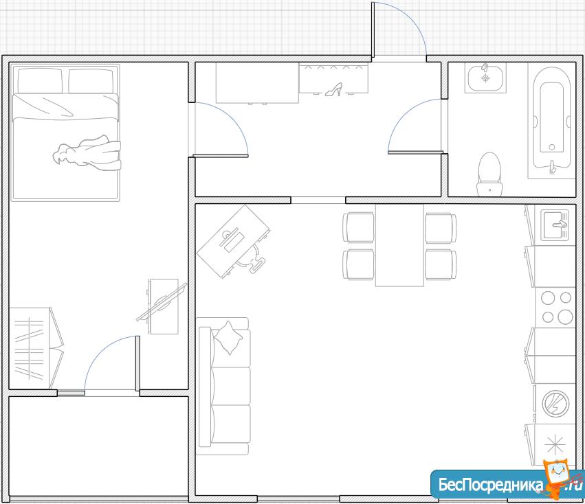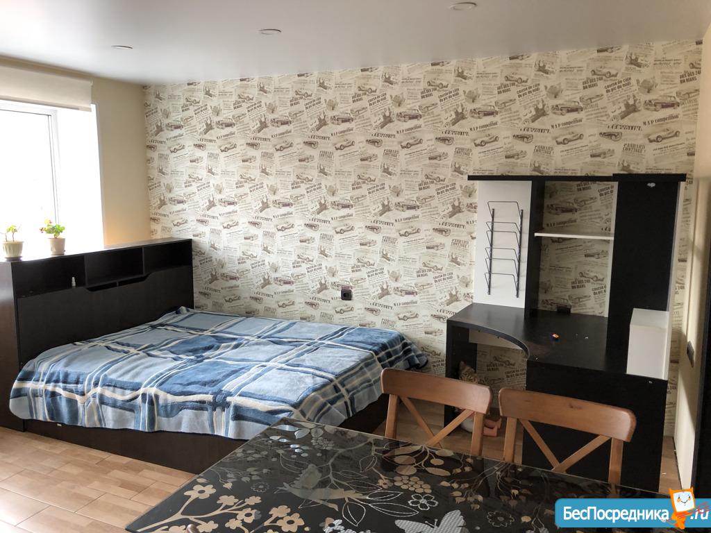 2-комнатная студия. Кухня-гостиная 25 кв.м, изолированная спальня 12,5 кв.м., совмещенный санузел. Хороший ремонт. Квартира меблирована, есть все необходимое: кровать, диван (раскладной), телевизор, электроплита, холодильник, стиральная машина.