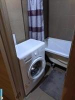 Рядом с домой есть вся развитая инфраструктура, магазины, kfc, пекарни, в 5ти минутах хотьбы автобусные остановки. В квартире есть два дивана, телевизор, шкаф для одежды, холодильник, стиральная машина автомат. Если есть домашний питомец, можно с ним.