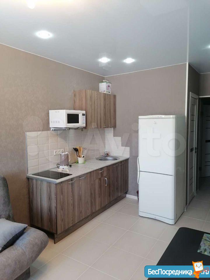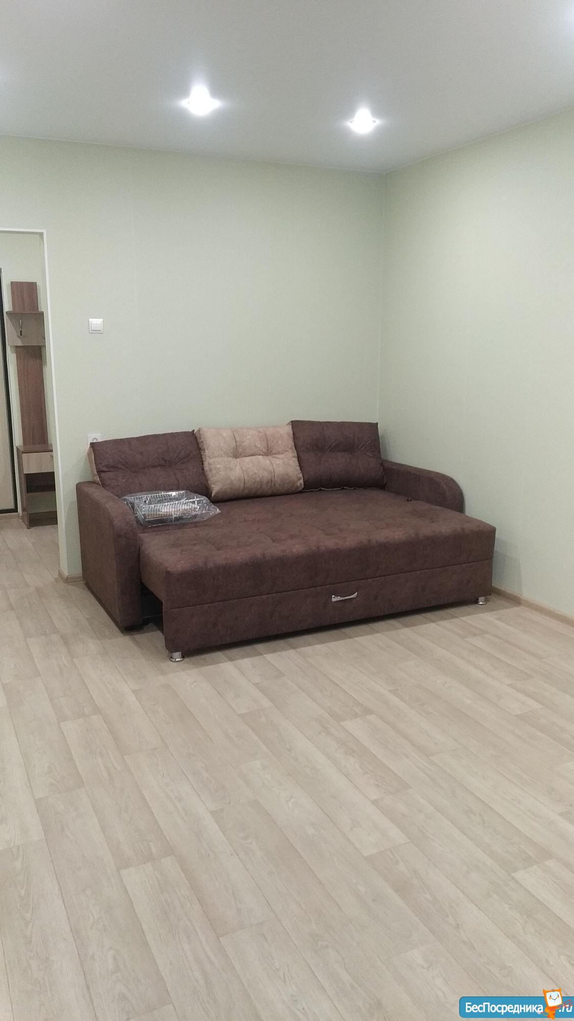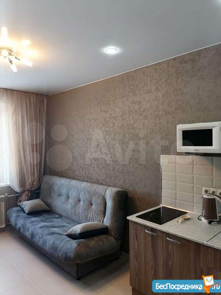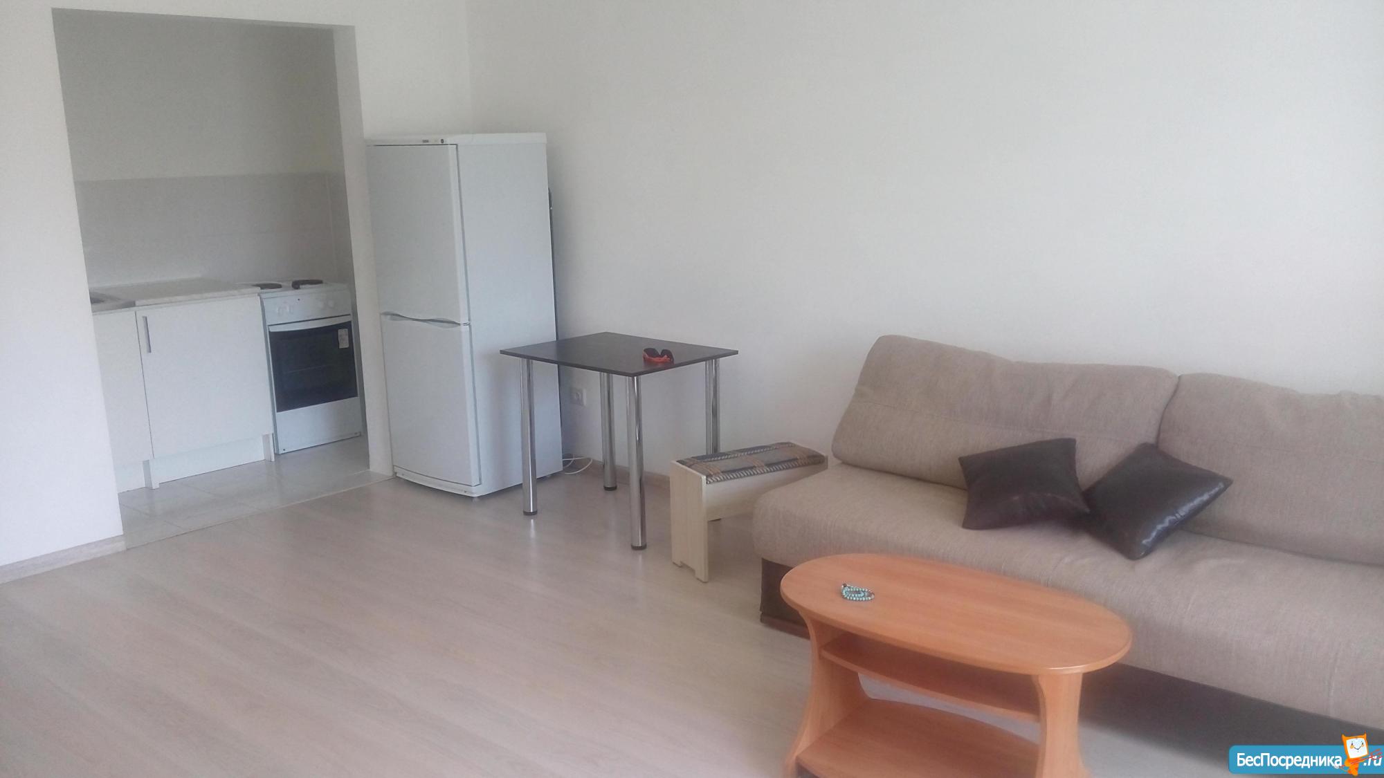 Квартира студия, чистая уютная, светлая. С мебелью. Есть всё необходимое. Бытовая техника есть. Кабельное телевидение. В шаговой доступности д. Сад и школа. Остановка в трех минутах. Очень развита инфраструктура. Очень много магазинов и пекарней. Приглашаем на просмотр.