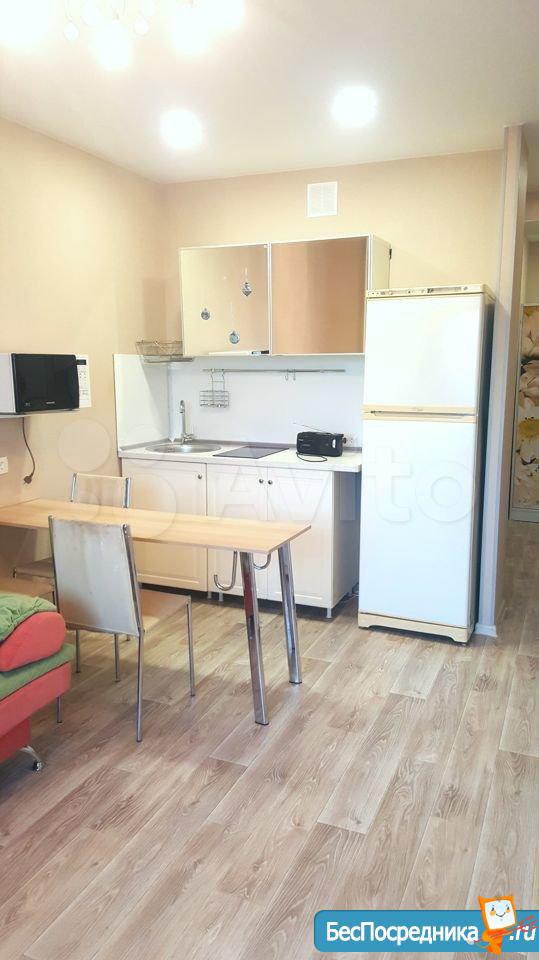 Сдам квартиру-студию в отличном состоянии в ЖК "Любимый", хорошая транспортная развязка, магазины и стадион Заря в шаговой доступности. 15 минут до метро Карла Маркса на машине. Новый ремонт.
