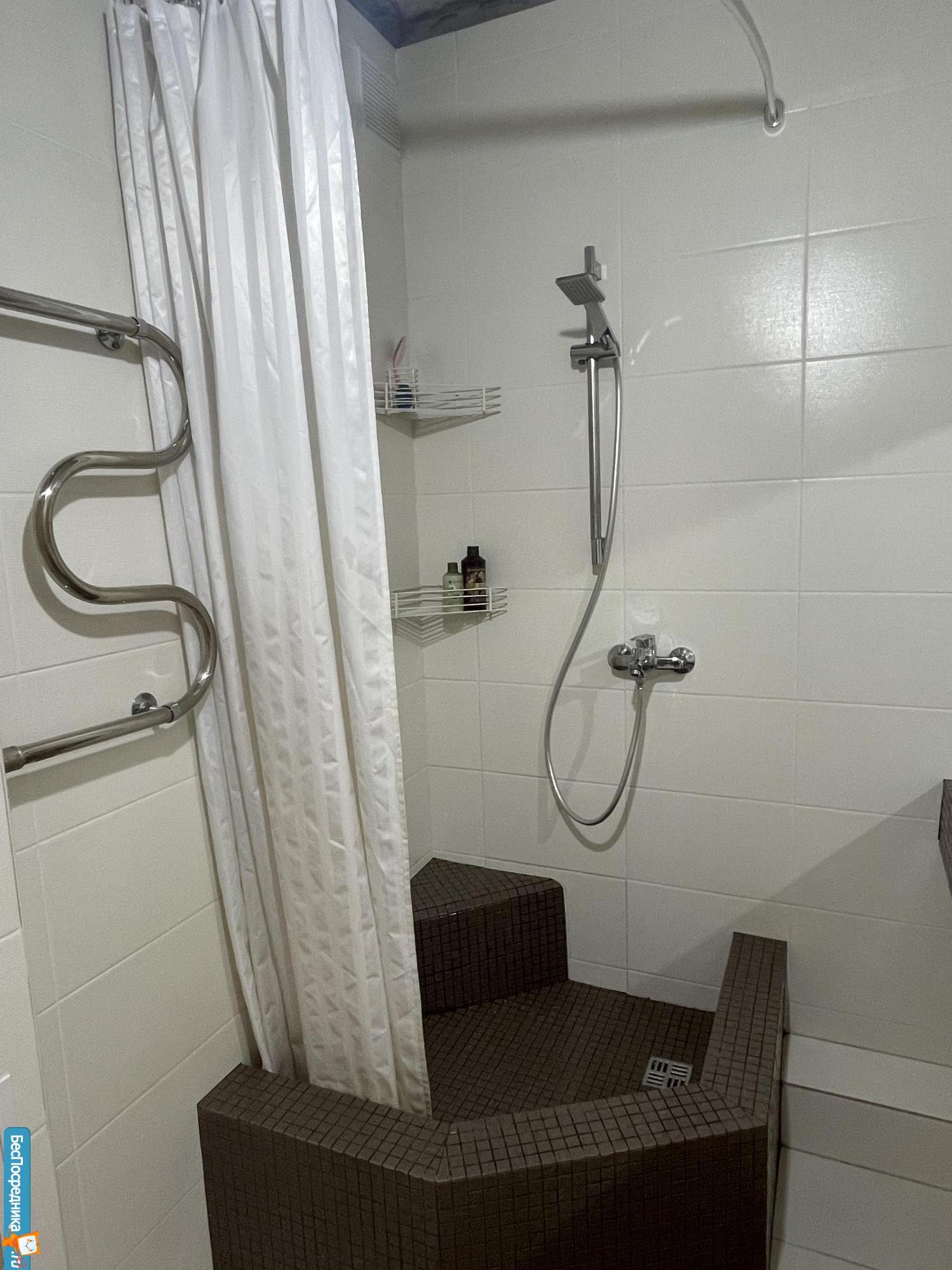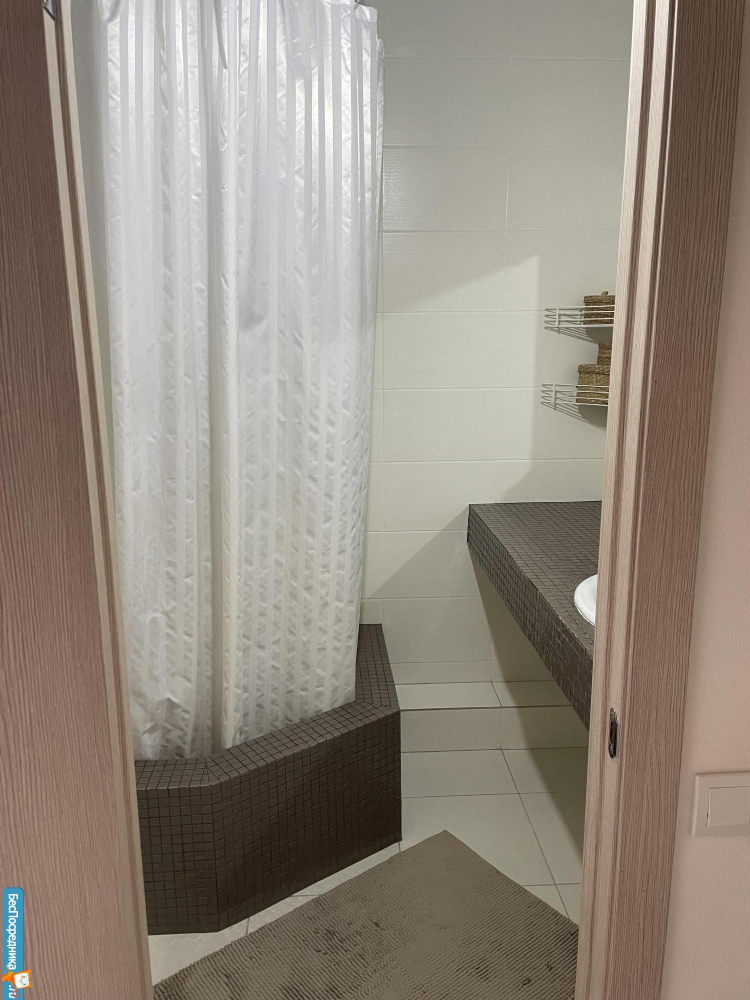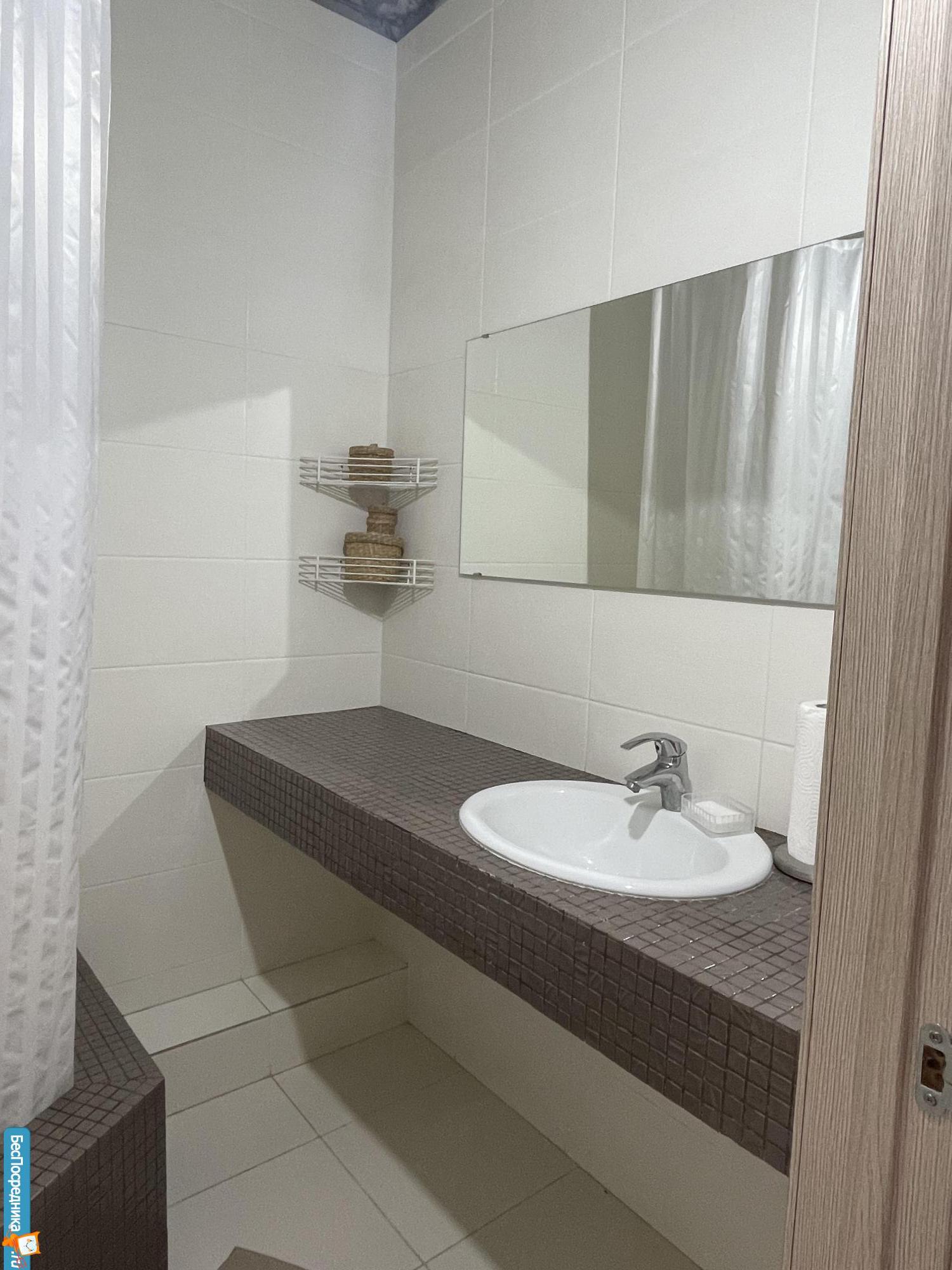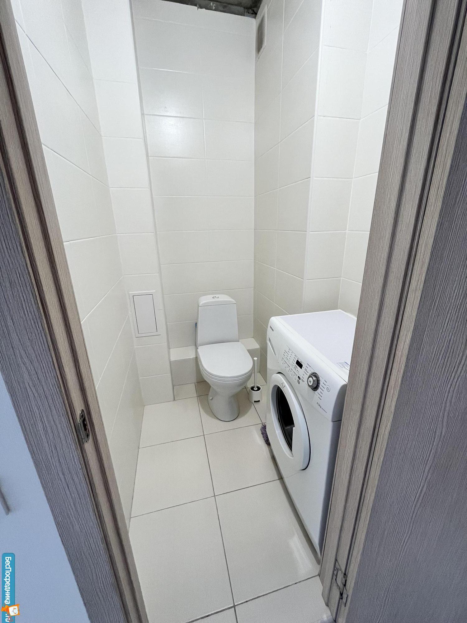 Санузел раздельный, в туалете установлена полноценная стиральная машинка, в ванной комнате столешница с врезной раковиной-красиво и очень удобно. Глубокая и большая душевая кабина.