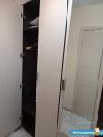 В квартире остаётся все как на фото: двухспальная кровать, телевизор, сушилка, шкаф-купе, стиральная машина автомат ( на кухне), есть такие мелочи как утюг, фен, немного посуды.