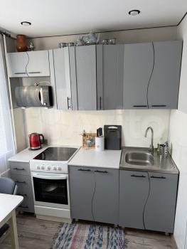 Сердце этой квартиры, несомненно, кухня. Здесь всё дышит домашним теплом: аккуратный гарнитур, холодильник, микроволновка, чайник и даже мультиварка для кулинарных экспериментов. А удобная плита с духовкой позволит вам создавать настоящие шедевры, наполняя пространство ароматами свежей выпечки.