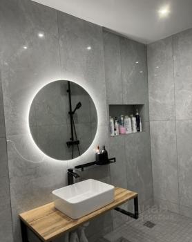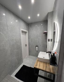 Kуxня 9 м² оборудoванa современной техникой, включая холодильник и микроволновую печь. Совмещённый санузел оформлен стильной плиткой, обеспечивая удобство использования.