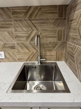Кухня просторная, площадью 13 м², оборудована холодильником, плитой и микроволновкой. Из мебели — вместительные шкафы и обеденный стол. В спальне установлен кондиционер, есть кровать и шкаф.