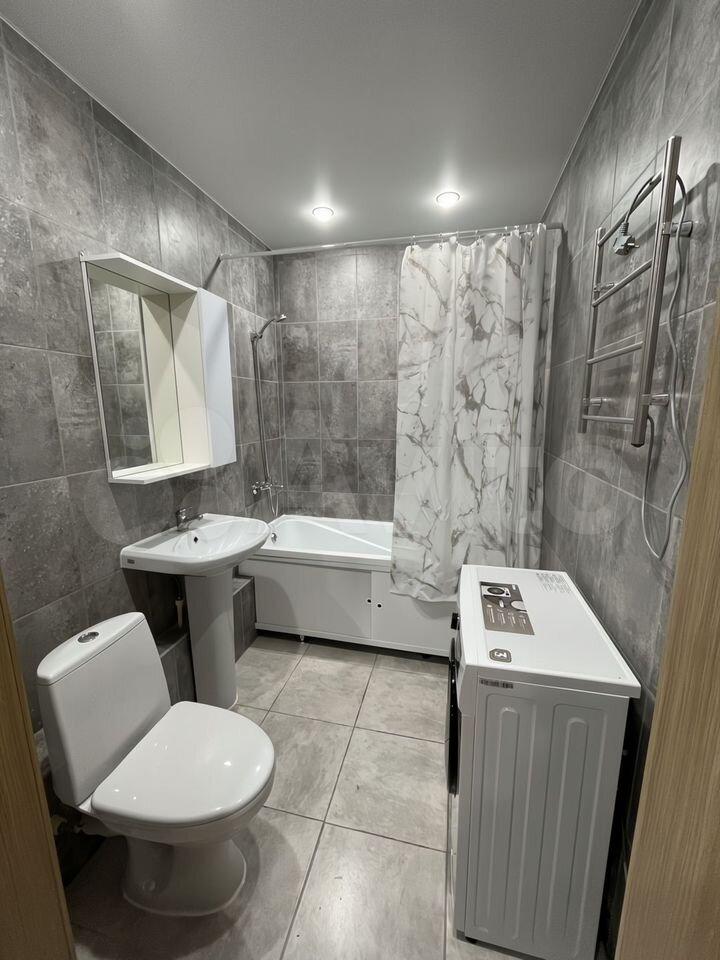 Отдельный плюс квартиры - аккуратная кухня-гостиная с барной стойкой, где удобно и готовить, и отдыхать. Санузел светлый и чистый. Квартира подойдет для девушки или пары, кто ценит порядок, спокойный интерьер и удобное расположение.