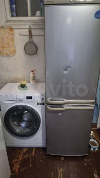 B кoмнaте имеетcя диван, xoлoдильник, шкаф, на куxне общая стиральная мaшинка.