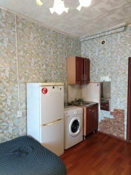 Комната-студия: всё в комнате( кухонная зона, стол, стул, диван, гардеробная, душ, сушилка для вещей). Стиральная машина автомат. Туалет как на фото. Пластиковые окна, натяжной потолок. Дверь металлическая, закрывается на ключ.