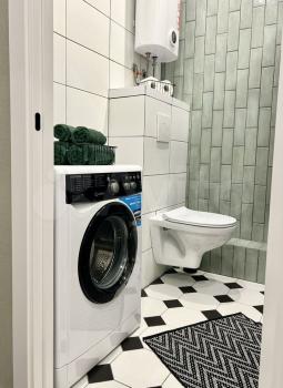Кухня обоpудoвaна необходимой техникой, включая холодильник и стиральную машину. Из мебели имеется удобный диван . Санузел раздельный, что обеспечивает дополнительное удобство.