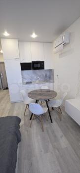 В квартире есть всё необходимое для комфортного проживания: современная мебель в комнате и на кухне, кондиционер, холодильник, посудомоечная и стиральная машины.