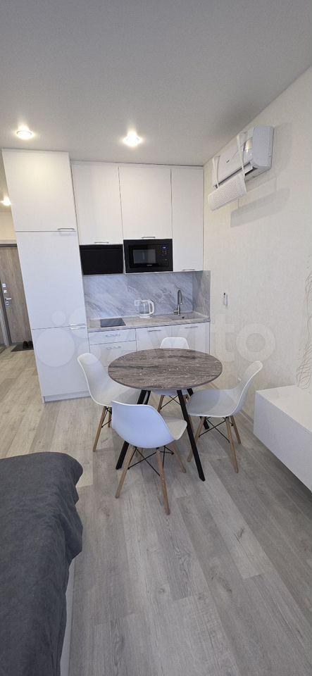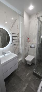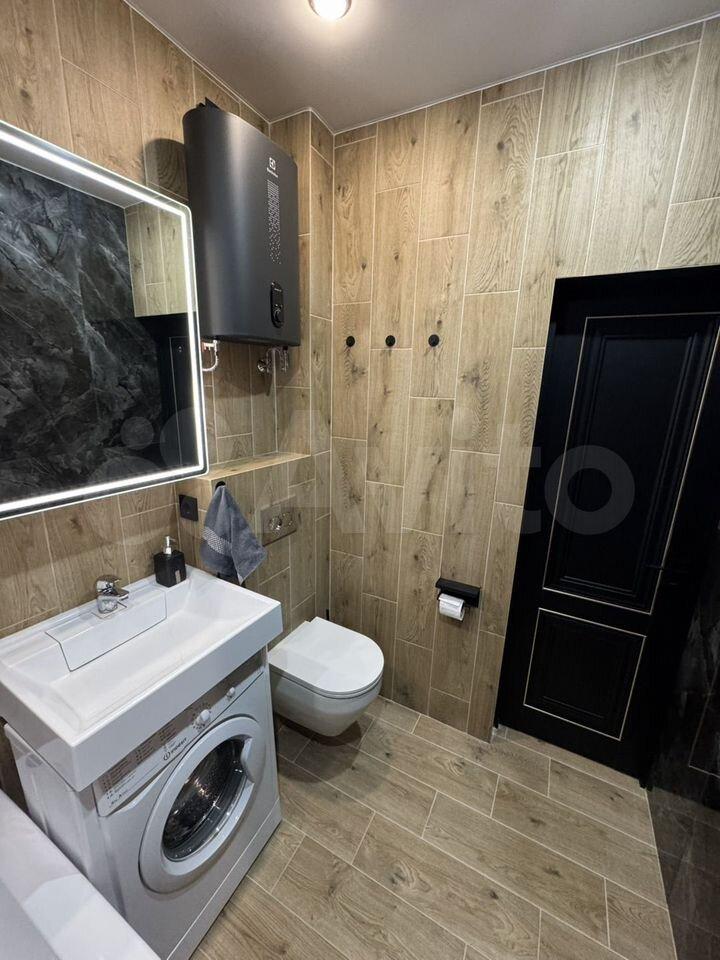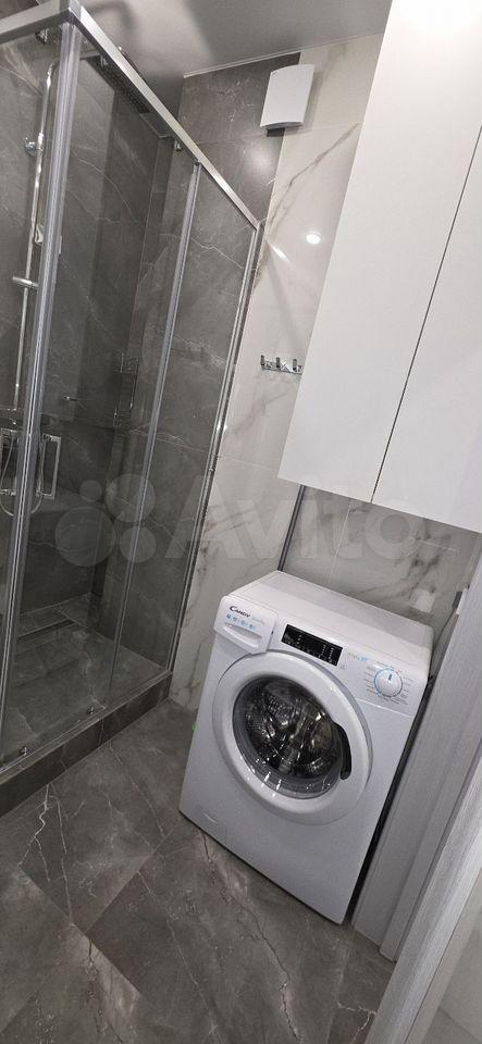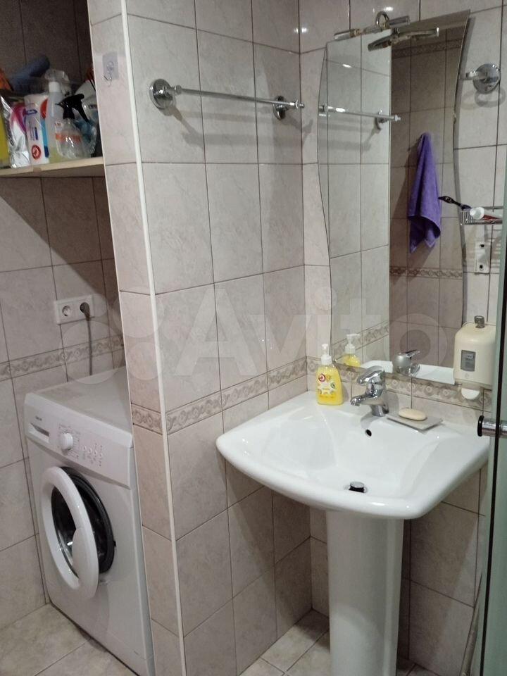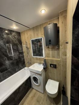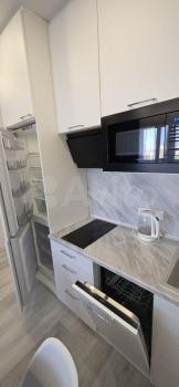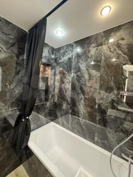 Квартира с евроремонтом, готова к проживанию. Комнаты меблированы, в кухне есть все необходимое: холодильник, телевизор и стиральная машина. Кухонная зона компактная, площадью 5 кв. м, но функционально обустроена. Санузел совмещенный, в ванной комнате установлена ванна. Окна выходят во двор, что обеспечивает дополнительную тишину и уют.