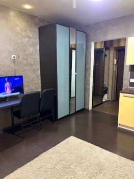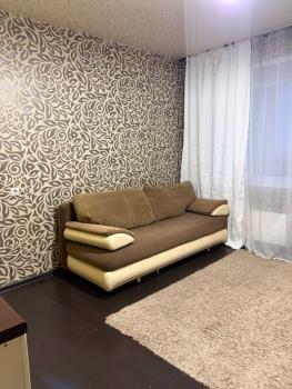 В квартире выполнен косметический ремонт. Просторная кухня площадью 12 м² оснащена необходимой мебелью и техникой, включая холодильник и микроволновую печь. В комнате установлены шкафы и диван, что обеспечивает комфортное размещение двух спальных мест.