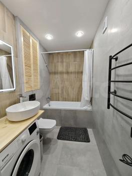Санузел совмещенный, выполнен в современном стиле с качественной отделкой. Лоджия застеклена, что обеспечивает дополнительное пространство для отдыха.