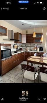 Кухня-гостиная просторная и включает удобную рабочую зону, большой обеденный стол со стульями. В зоне отдыха диван-кровать (спальное место 140 см).