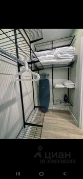 Большой шкаф, с полочками и штангами, сушилка для вещей, гладильная доска.