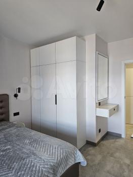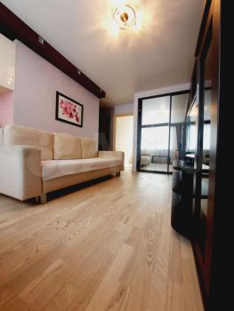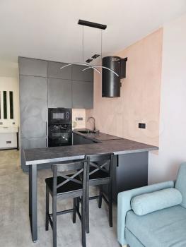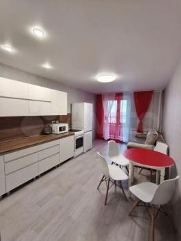 В квартире выполнен новый евро ремонт. Просторная кухня- гостинная оборудована необходимой бытовой техникой, включая холодильник и микроволновую печь, электро- плитой, обеденный зоной, также имеется диван- кровать для отдыха и сна. В зале установлен телевизор и диван- кровать, шкаф - купе для хранения вещей. Все новое.