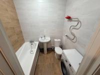 Санузел совмещенный, оснащен ванной и стиральной машиной. В квартире установлены современные двери и окна.