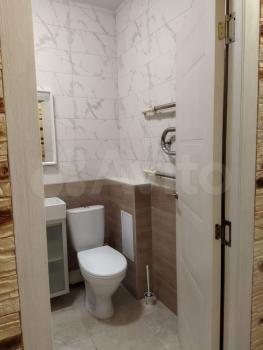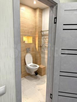 Санузел совмещенный, выполнен в современном стиле. В прихожей предусмотрены удобные шкафчики для хранения вещей.