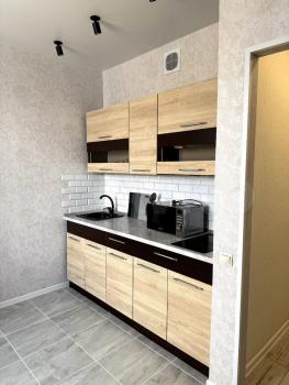 Квартира расположена на 16 этаже современного панельного дома 2025 года постройки. Закрытый комфортабельный большой двор с игровыми площадками для детей разных возрастов, тренажерная площадка. В доме есть два пассажирских и один грузовой лифт. Просторная кухня площадью 8 м² оборудована всей необходимой техникой, включая холодильник и микроволновую печь.