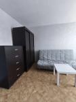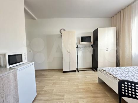Студия полностью мебелизированную мебелью, посудой для приготовления пищи, техникой (кухня, кровать с ортопедическим матрацем, стол/стулья), шкаф под одежду, шторы, с техникой (LСD телевизор, плита, стир. машина, холодильник, чайник, СВЧ печь, утюг, гладильная доска, сушилка).