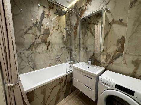 В квартире выполнен дизайнерский ремонт. В комнате и на кухне есть вся необходимая мебель, создающая уютную атмосферу. Для вашего комфорта установлены кондиционер, холодильник, посудомоечная и стиральная машины, телевизор. Кухня площадью 6 кв. м отлично подходит для приготовления вкусных блюд. Санузел совмещённый, оборудован ванной и душевой стойкой, что позволяет расслабиться после долгого дня. Из окон открывается вид на улицу, а на лоджии можно насладиться свежим воздухом.