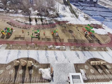 Во дворе предусмотрены детская и спортивная площадки, что удобно для семей с детьми.
