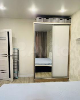 В прихожей: просторный шкаф-купе, зеркало с консолью. В основной комнате: двуспальная кровать с ортопедическим матрасом, Телевизор, большой и вместительный шкаф-купе.