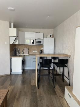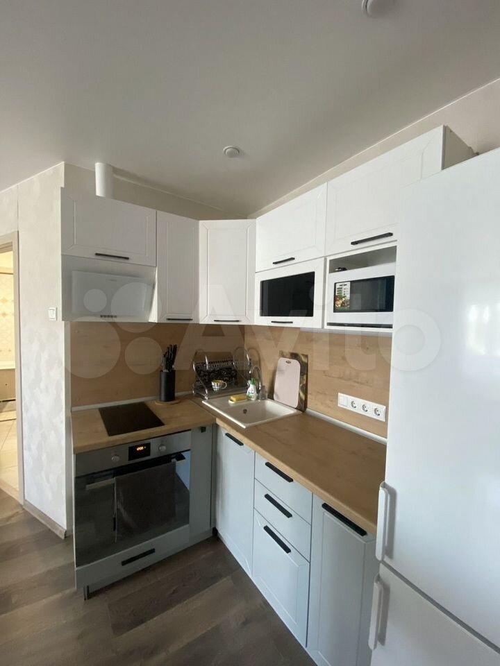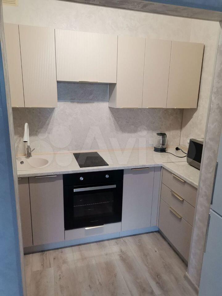 Новая квартира полностью меблирована: диван, кухня, стол, стулья