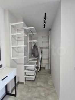 Кухня оснащена необходимой мебелью и техникой, включая плиту. В квартире есть гардеробная для удобства хранения одежды.