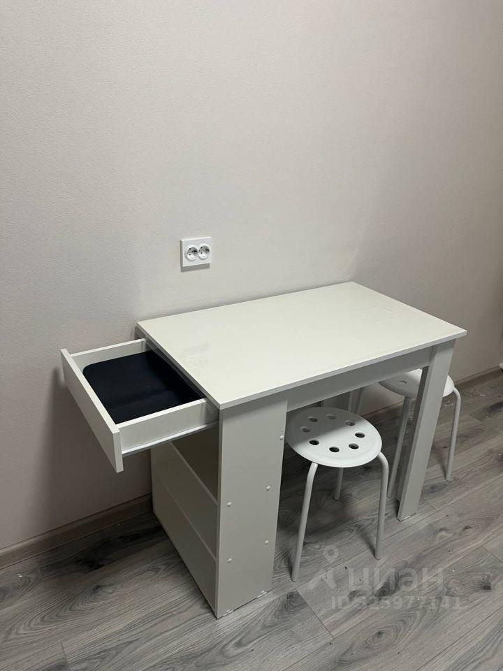 В квартире имеется вся необходимая мебель: шкаф, диван, обеденный стол и стулья, кровать, отделена рабочая зона со столом.
