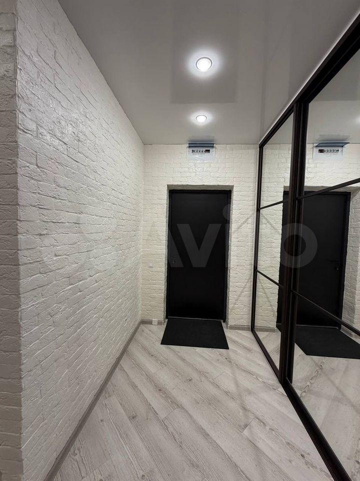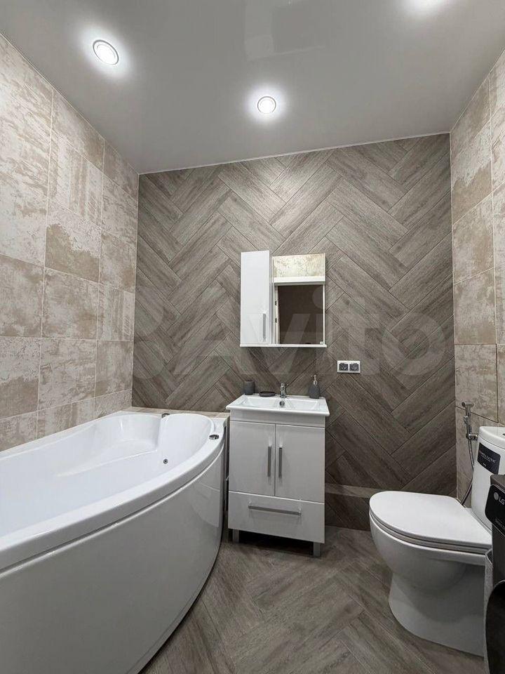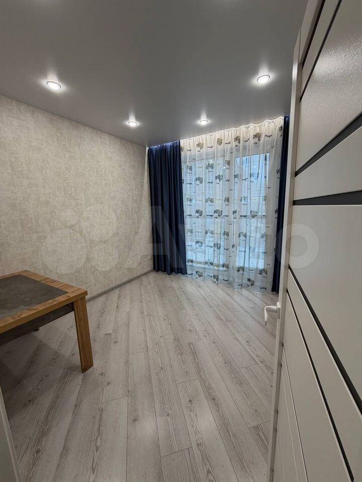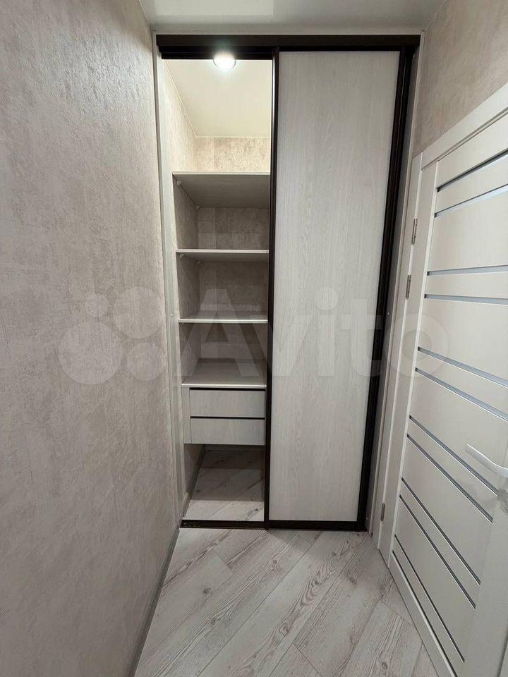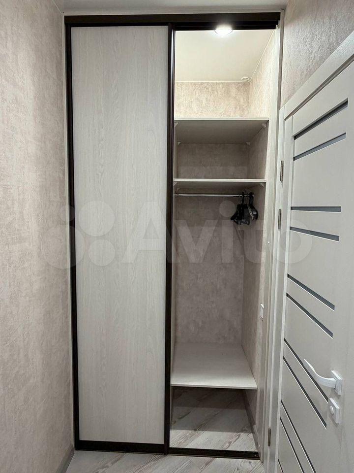 В квартире сделан качественный евроремонт. Пространство студии обустроено с умом: есть вся необходимая мебель, двуспальная кровать, большой шкаф купе с зеркалами, кухонный гарнитур, в прихожей вешалка с полками и тумба для обуви. Холодильник , варочная панель, микроволновка, стиральная машина, поэтому можно сразу заехать и начать комфортное проживание. Санузел совмещенный.