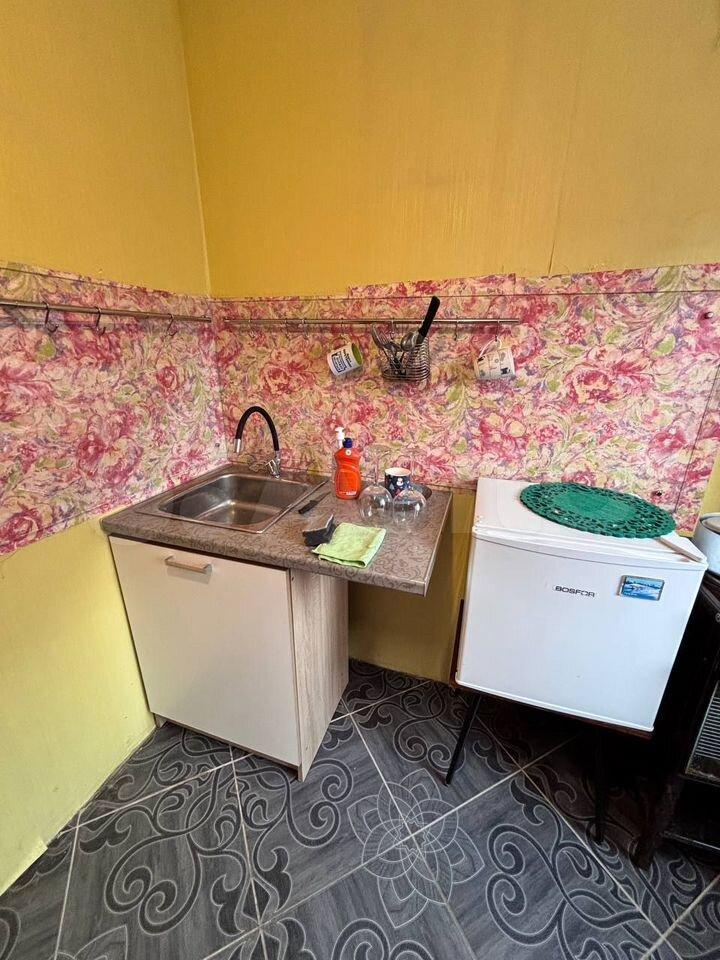 санузел - совмещённый, мебель - кухня, хранение одежды, спальные места, холодильник, плита, микроволновка, стиральная машина, водонагреватель.