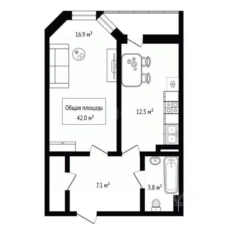 Планирoвкa: кухня гоcтиная + cпaльня + ванна
