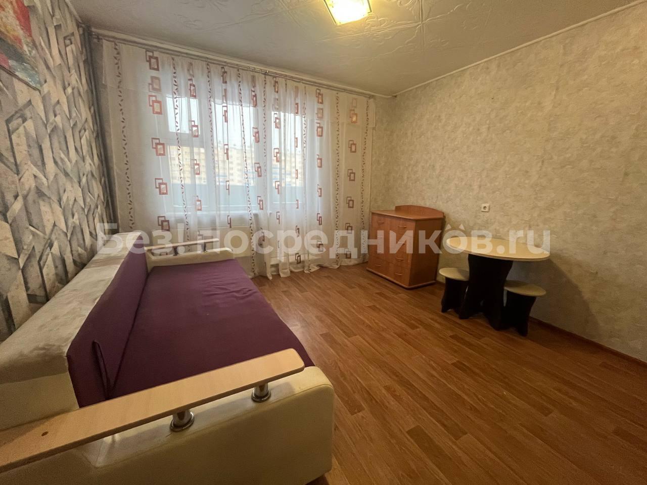 В комнате диван евро-книжка, широкий, 2 метра длиной. В кухне тоже раскладной диван, 2 метра длиной. В квартире 2 больших шкафа. Лоджия остеклена. Окна выходят во двор, поэтому машин под окнами минимум.