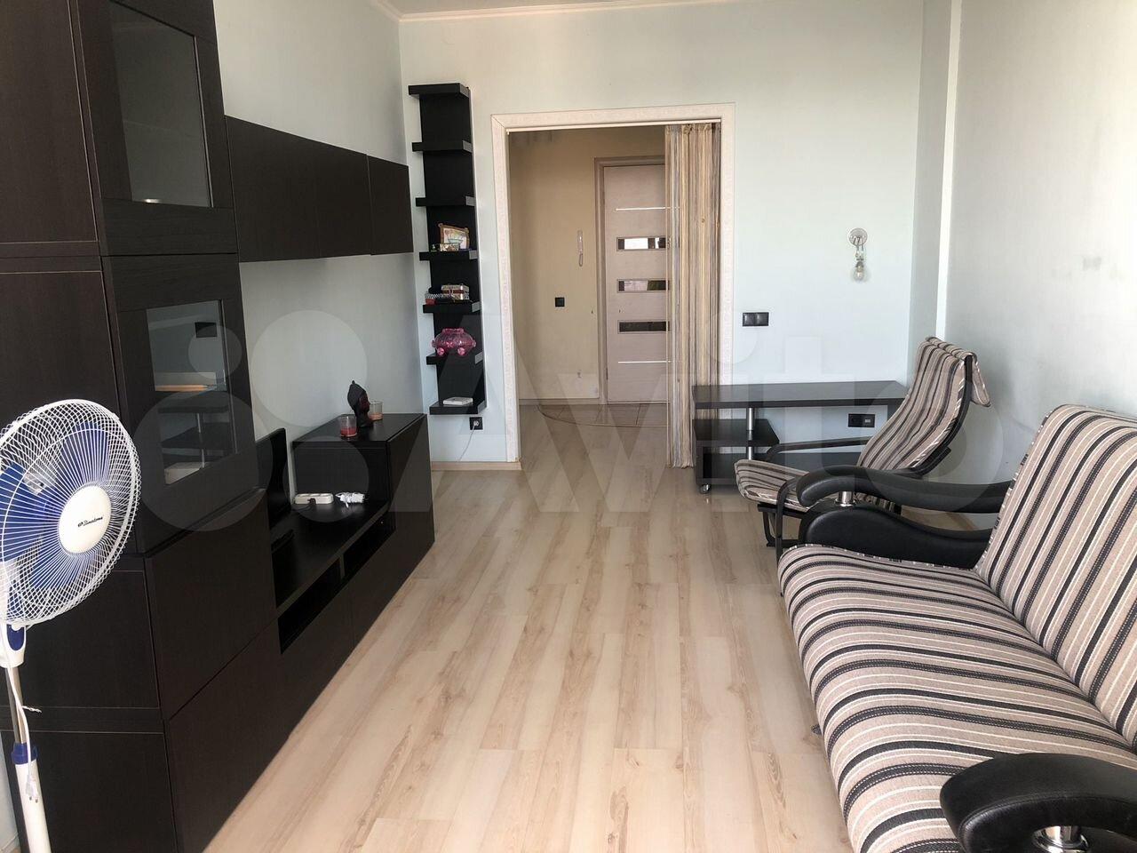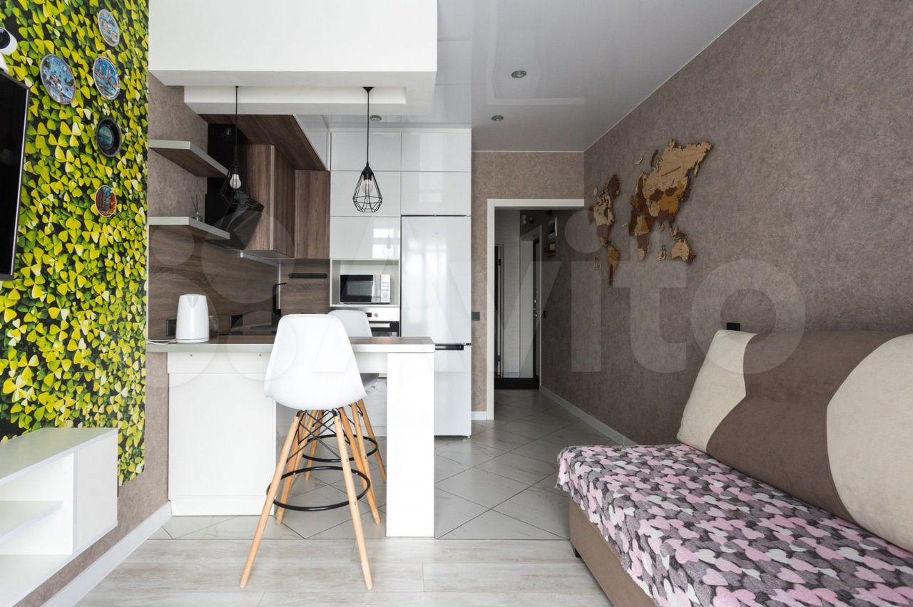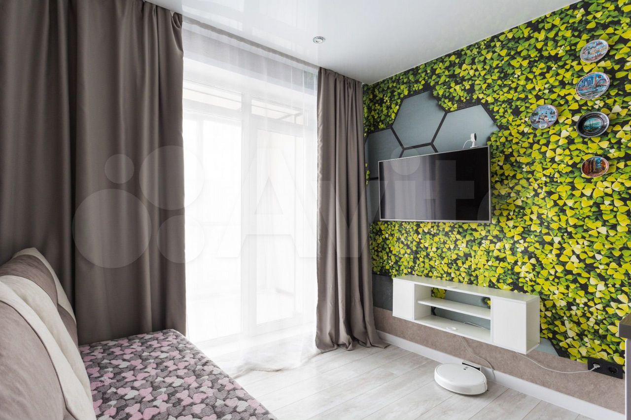 В квартире сделан качественный ремонт. Всё необходимое для жизни уже есть: кухонный гарнитур, техника, мягкая мебель. В комнате достаточно места для обустройства спальной и рабочей зон.