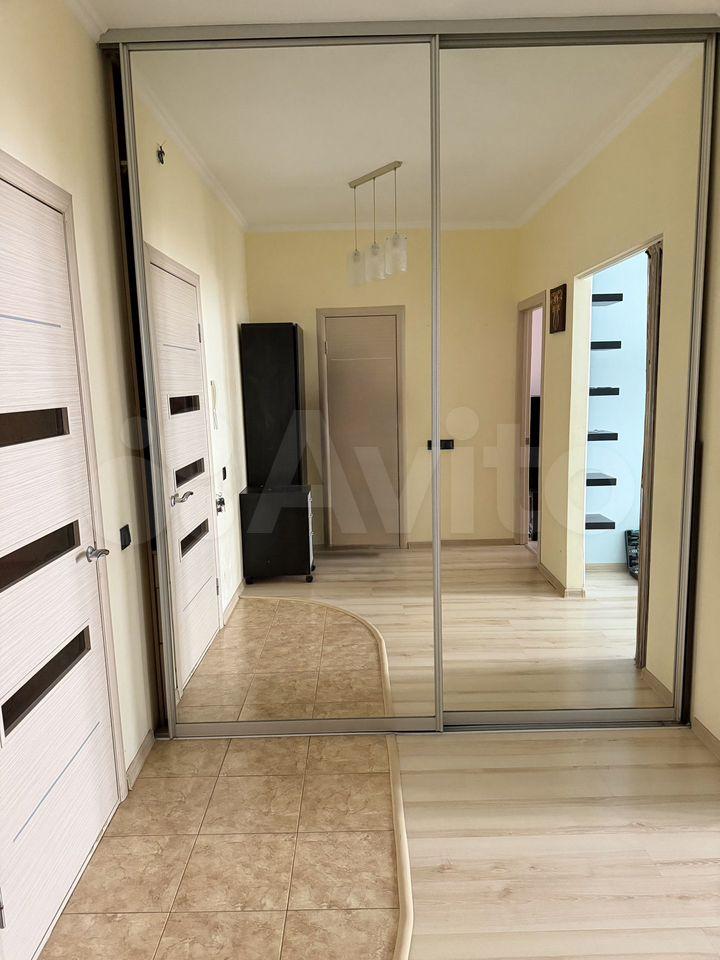 В коридоре расположен просторный платяной шкаф-купе, гладильная доска.