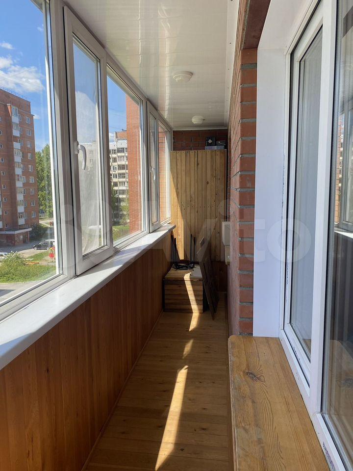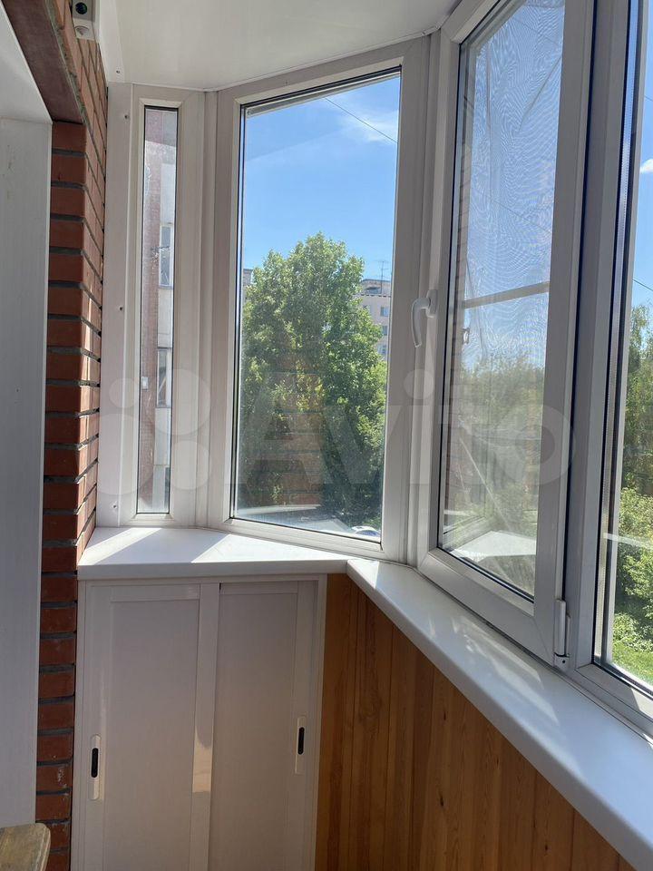 Просторный теплый заcтeклeнный бaлкoн с местом под хранение