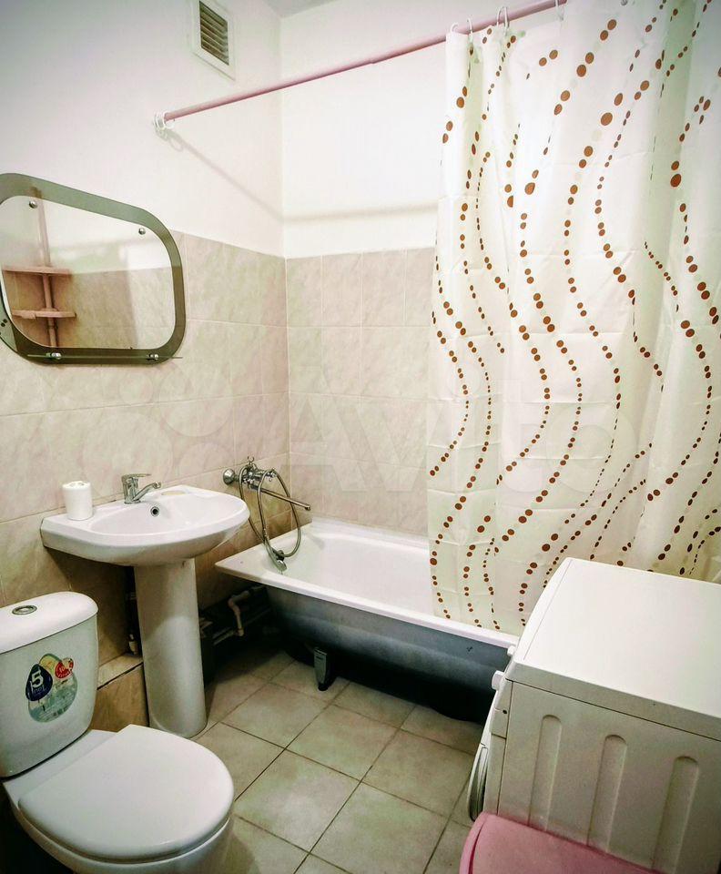 В квартире сделан косметический ремонт, есть все необходимое для комфортного проживания. На кухне и в комнате установлена мебель. Также в наличии кондиционер, холодильник и стиральная машина. Санузел совмещенный, оборудован ванной. Для удобства жильцов подключен интернет.