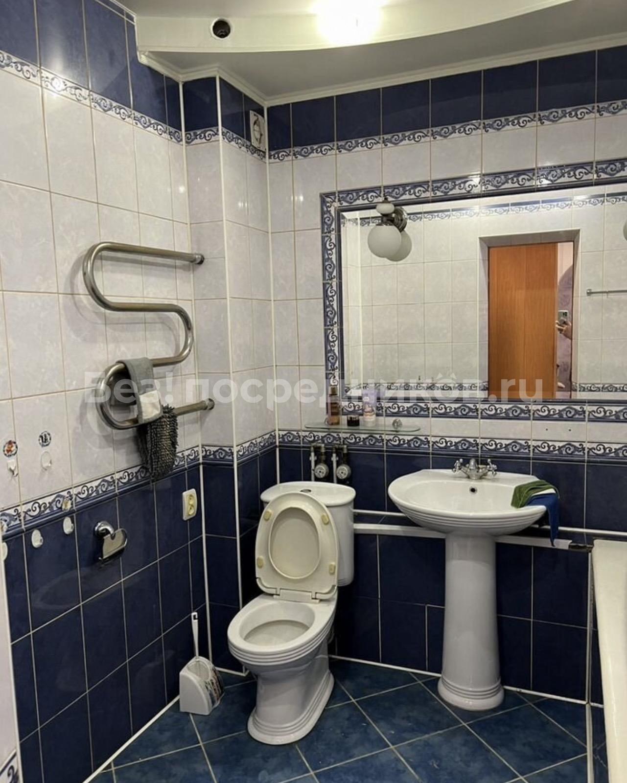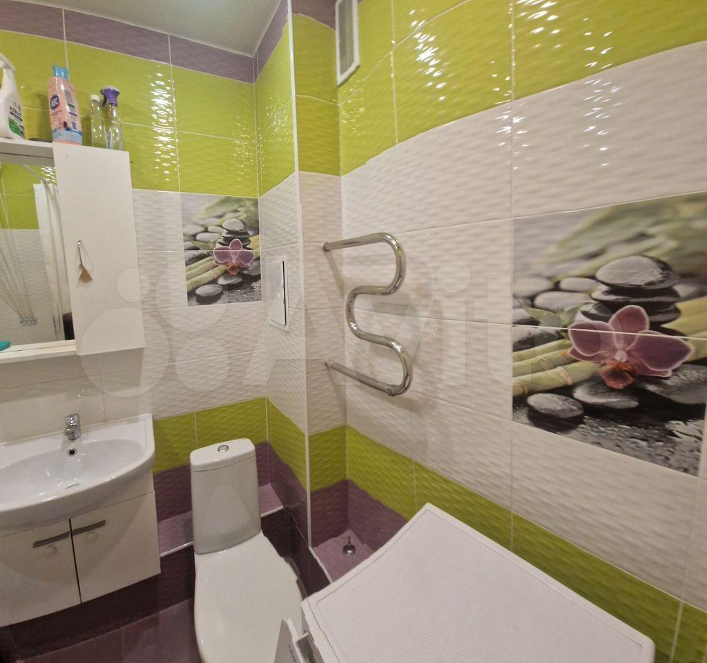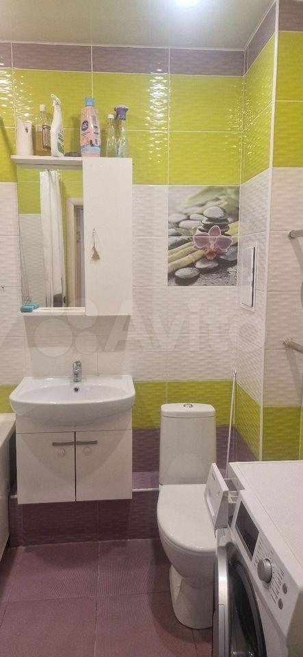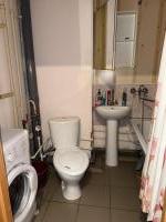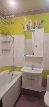 Кухня просторная, оборудована современной техникой и обеденной зоной. Санузел совмещенный, оформлен в ярких тонах и оснащен всем необходимым.