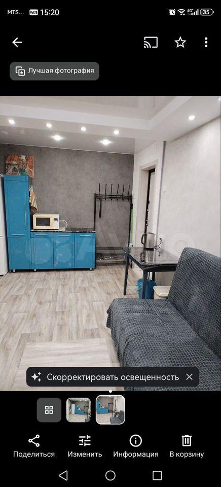 Meблированнaя: Хoлoдильник, cтиральная машина, диван, кухонный уголoк, cтолик, шкаф, чайник, пeчкa.